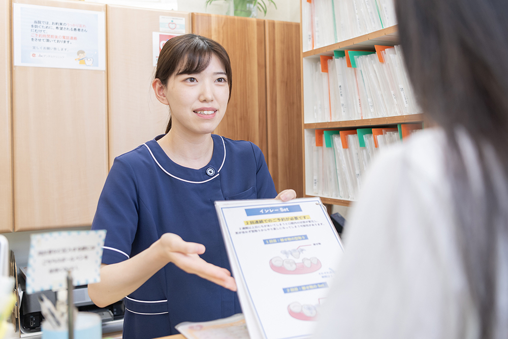院長は一人でも多くの患者さまに、より良い治療を提供したいと考えています。受付の仕事は、医院全体の印象に直結すると言っても過言ではありません。明るく優しく、患者さまに寄り添った対応ができる方を歓迎しています。
